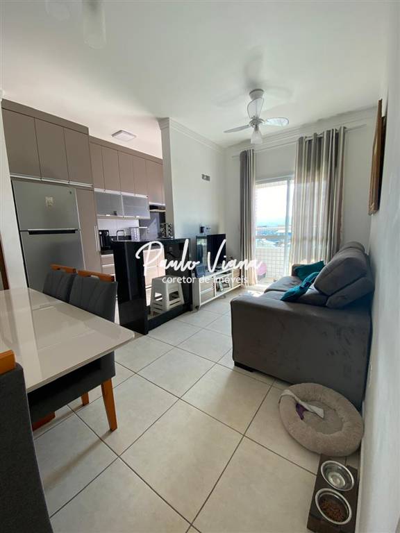 O imóvel estam bem distribuído com sala de janta e sala de estar, sacada gourmet com fechamento em vidro, vista definitiva para o mar, bem iluminado, arejado, são dois dormitórios sendo uma suíte, wc social com box de vidro, cozinha americana com planejados, área serviço e uma vaga de garagem coberta.