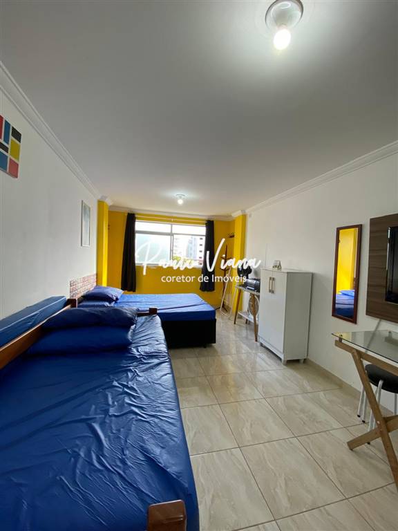 Linda kitnet a aproximadamente 200 metros da praia, toda mobiliada, com garagem, portaria 24h, antena coletiva.